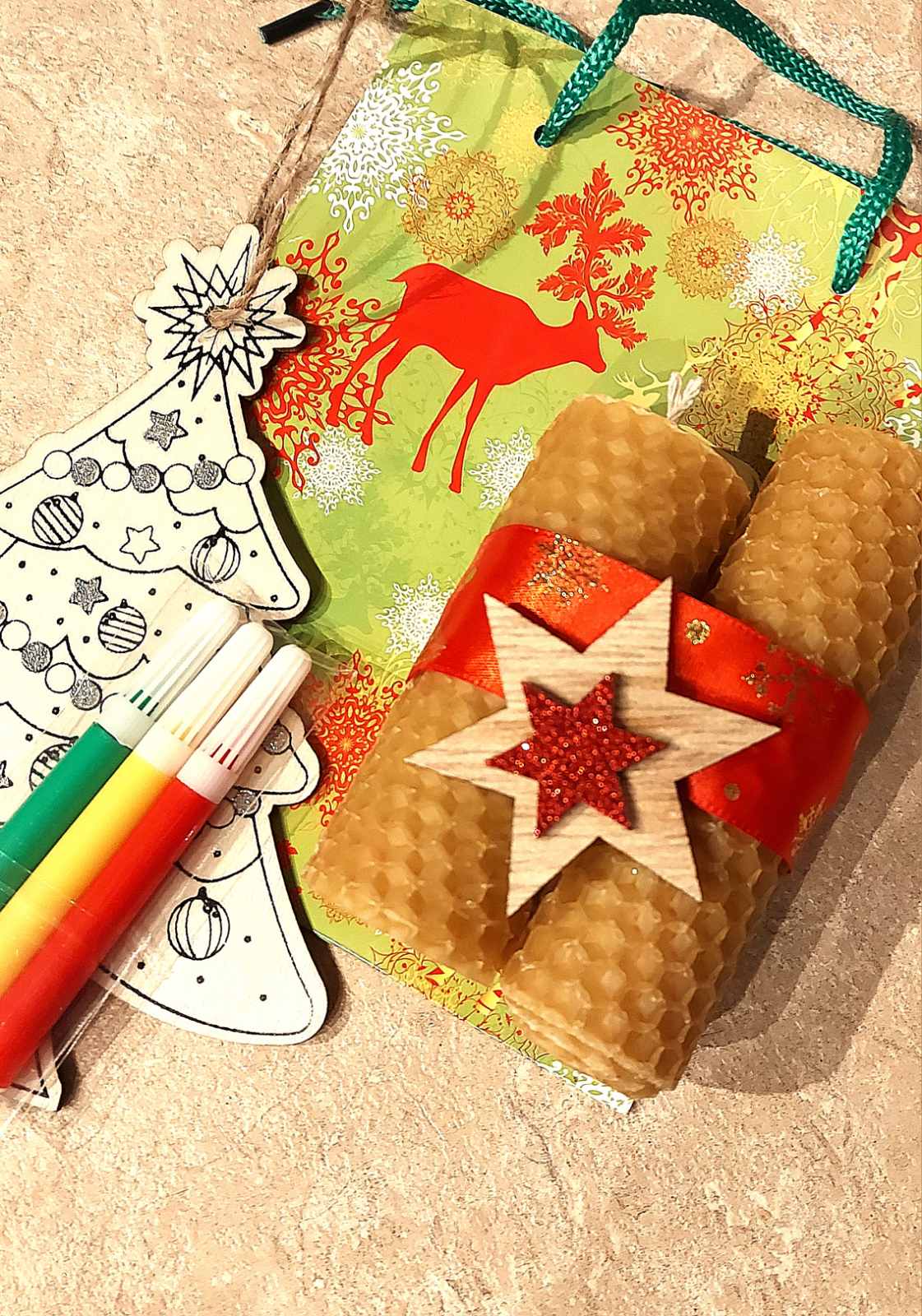 - Δύο χειροποίητα κεριὰ ἀπό φυσική κηρήθρα φτιαγμένα μέ ἀγάπη ἀπό τίς ἀδελφές.